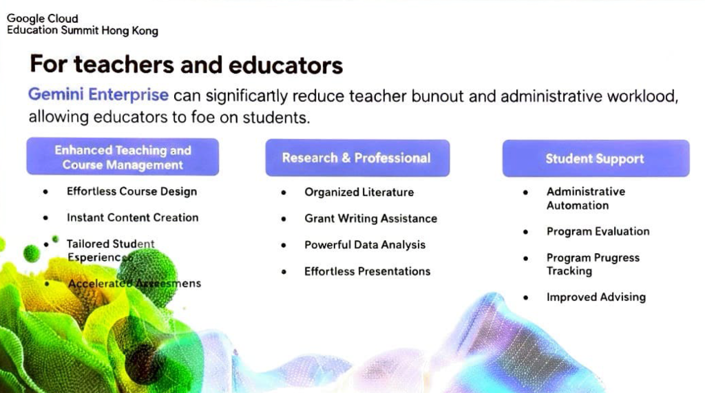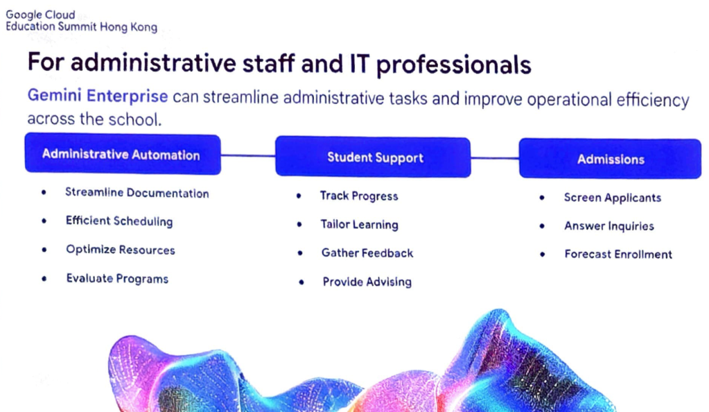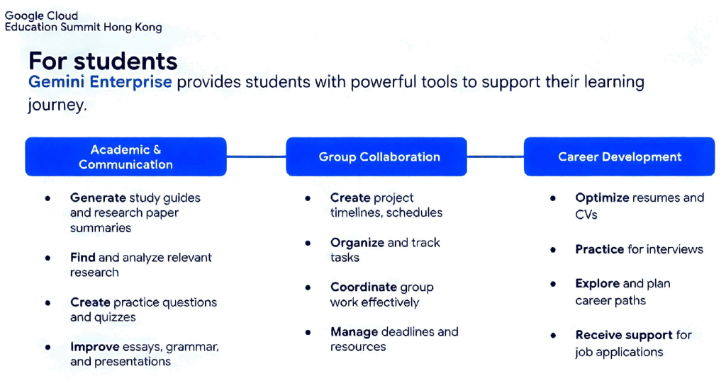 會場上,Gemini 展現了其在學校不同持份者中的應用潛力: