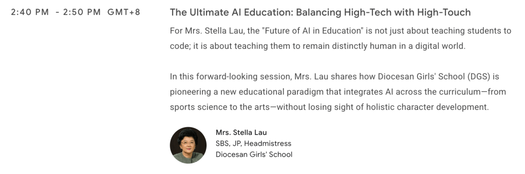 我們學校這次也深度參與其中,由校長與 IT 科統籌,分別主持了兩場分享,展現了學校在推動教學科技化上的決心。