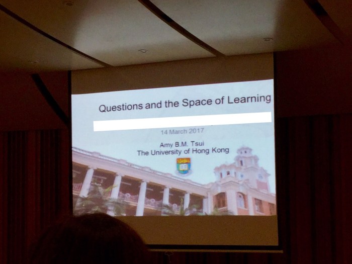今天是「教師發展日」,有幸能聆聽香港大學教育學院 Professor Amy Tsui 的關於 Questions and the Space of Learning 演講。他的主要觀點,在於以下一句: