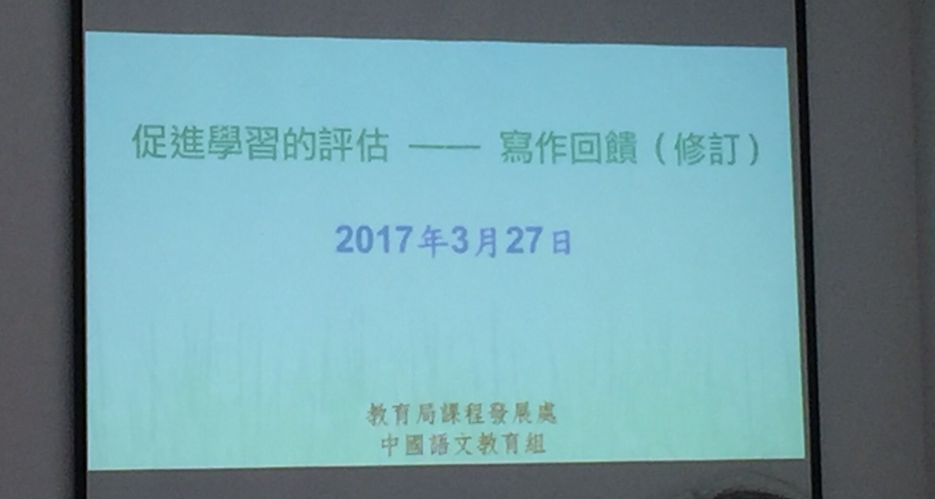 今天的工作坊,題目為「促進學習的評估——寫作回饋」。三所學校的老師,分別就他們各校的寫作教學作分享。三所學校都提出了以下觀點:寫作教學不只着重於手寫的過程,更重要的是: