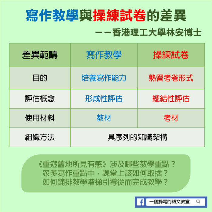 二、寫作教學與操練試卷的差異