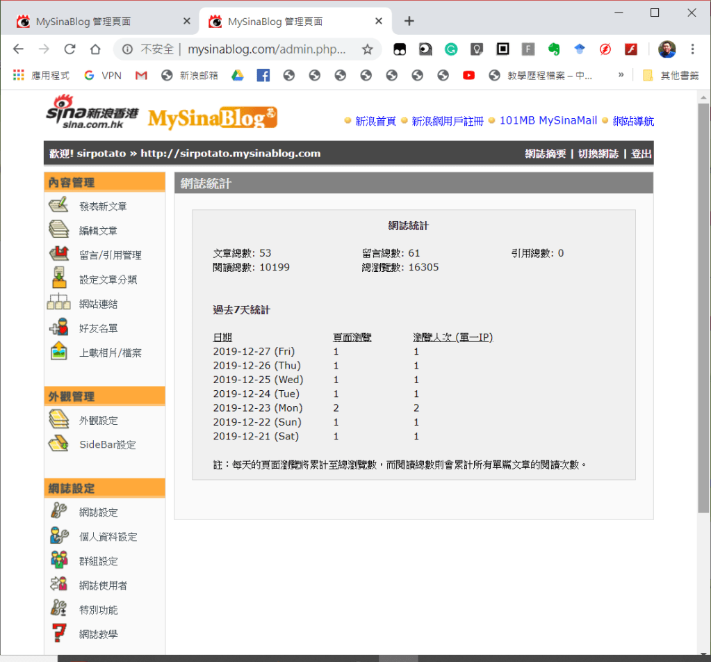 2020年快到了,送舊迎新,好好感謝MYSINABLOG,也向當年的舒老師說一聲:
