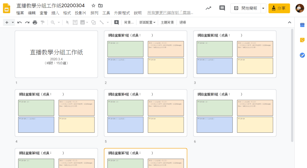 如此一來,無論如何分組,每一組的組員都能在 Google Slide 上重逢!